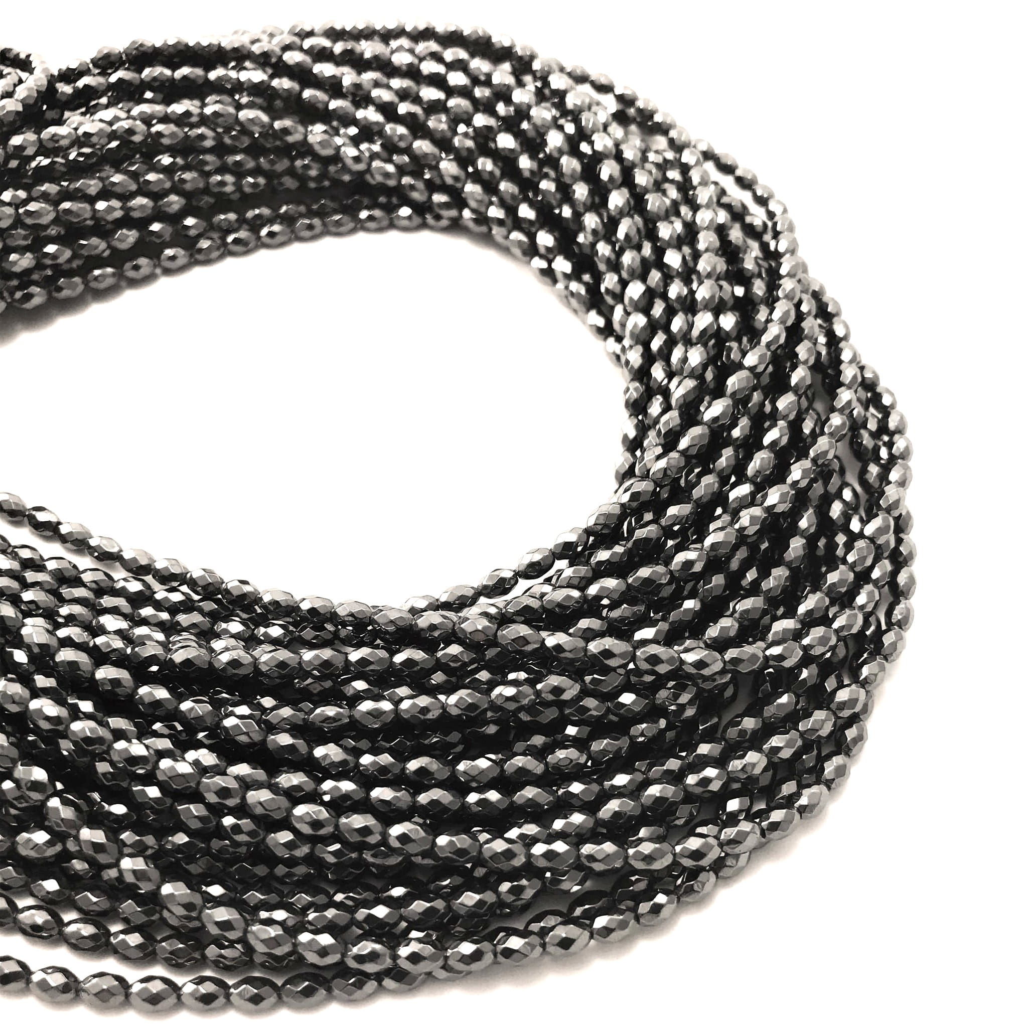 Hematyt grafitowy oliwki fasetowane ryż 6x4 mm - sznur